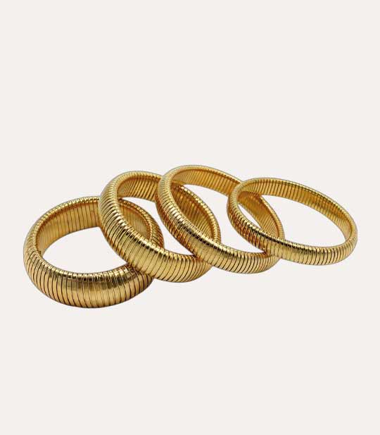 Estelle armbåndet er et kraftfuldt og elegant statement-smykke med et moderne ribbet design. Perfekt til at løfte dit look – fås i både guld og sølv.