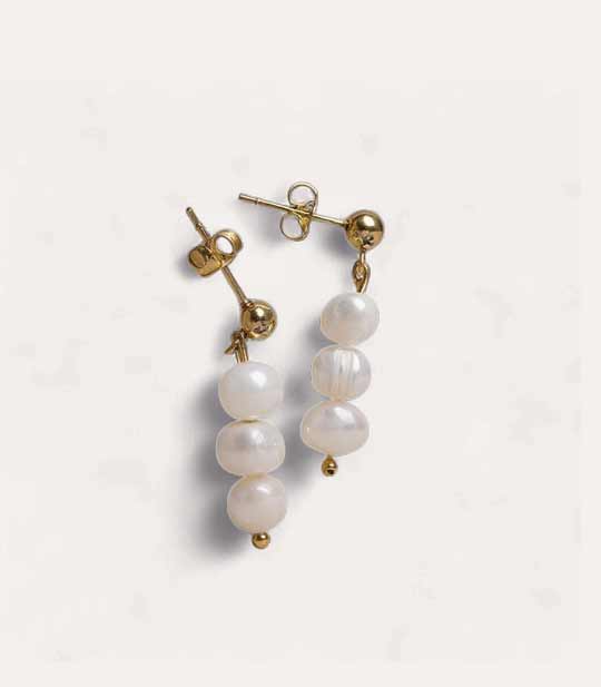 Minea øreringene forener klassiske ferskvandsperler med et moderne udtryk. De tre perler skaber et stilfuldt fald, som tilfører femininitet og elegance til dit look.