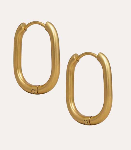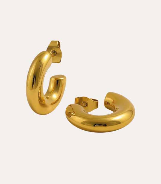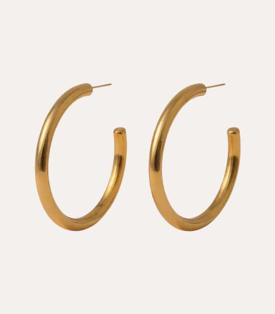 Auriel øreringene er elegante og tidløse hoops i guldbelagt rustfrit stål. Vandfaste, allergivenlige og perfekte til både hverdag og fest.