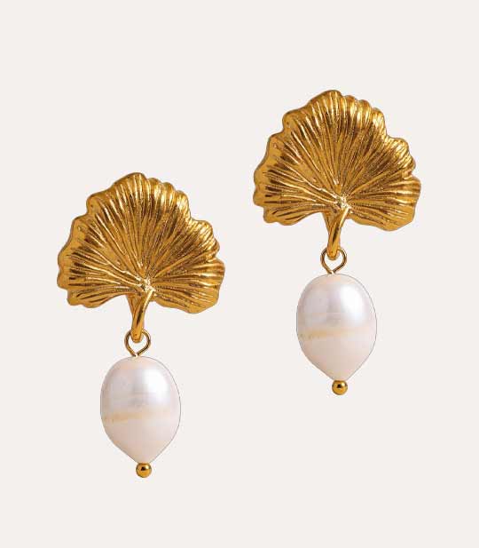 De forgyldte øreringe med ægte perle tilfører et klassisk og sofistikeret udtryk – perfekt til både hverdag og særlige anledninger.