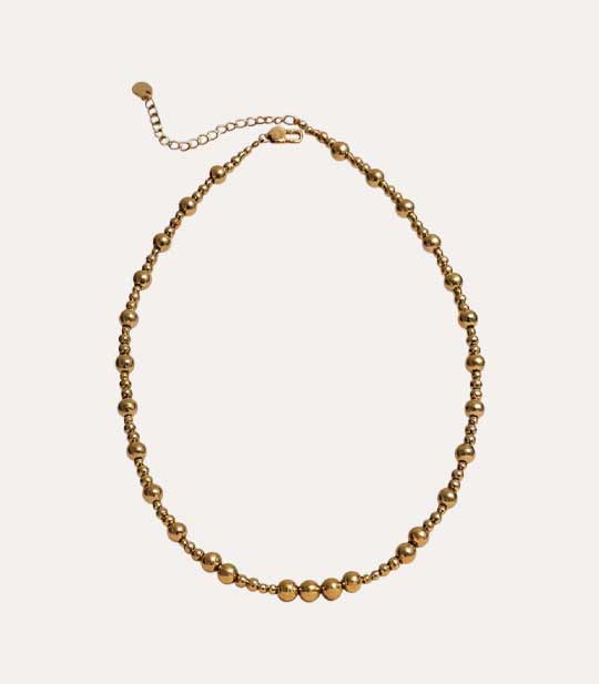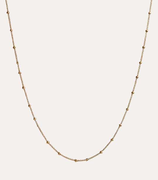 Elegant og feminin halskæde i 18K guldbelagt stål med fine kugledetaljer. Den lette kæde (1.8 mm bred) har en justerbar længde på 45 + 5 cm og passer perfekt både alene og i lag. Nikkelfri og ideel til daglig brug.