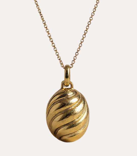 Mirelle er en elegant halskæde med et ovalt vedhæng i snoet design. Den matcher perfekt med Mirelle Ringen og fås i både guld og sølv.