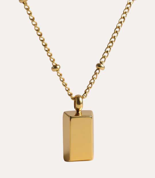 Strength halskæden har et stilrent, firkantet vedhæng og en enkel kæde med karakter. Et smykke, der udstråler ro, styrke og balance – perfekt til både hverdag og gave.