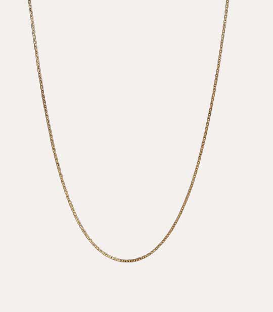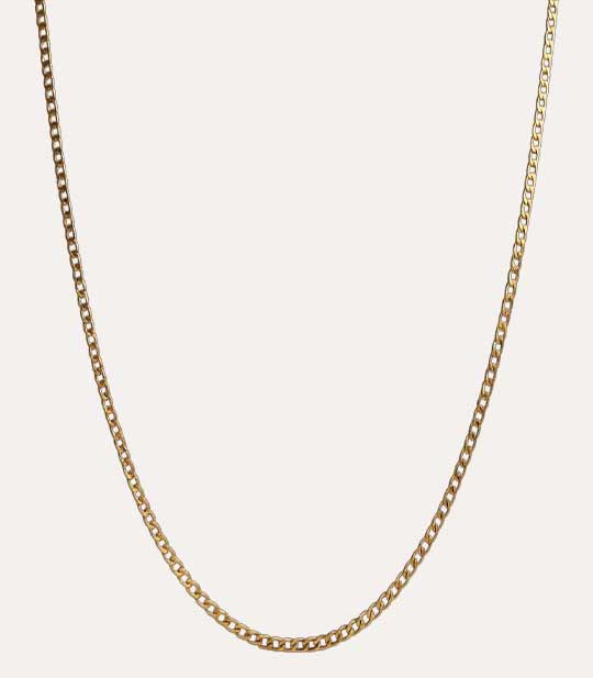 Celia Halskæden er en enkel og elegant curb chain i guld på 2mm. Den måler 45 cm + 5 cm forlængelse og er perfekt både alene eller sammen med andre kæder.