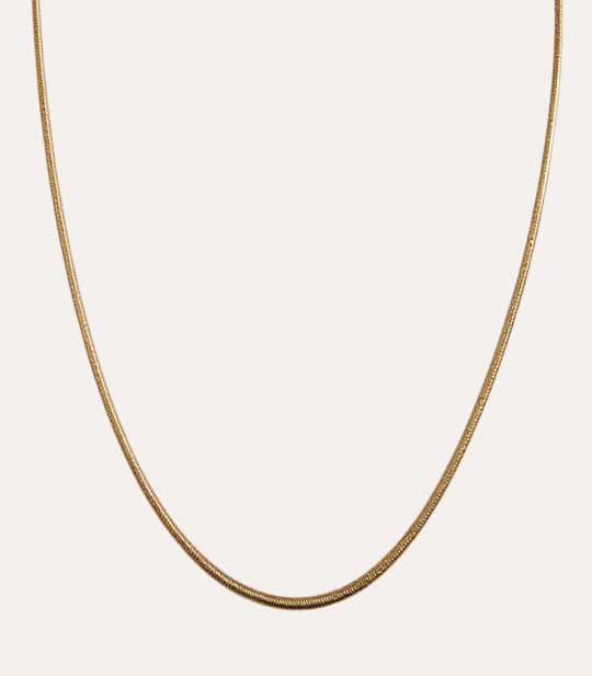 Sofia Halskæden er en elegant rund slangehalskæde i 1,2 mm bredde. Fås i både guld og sølv.