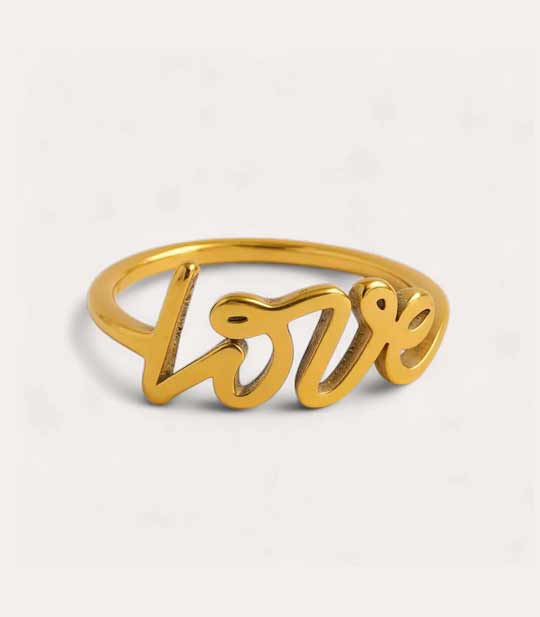 Feminin ring med det håndskrevne ord "Love" som centerpiece. Let, elegant og perfekt som gave – eller til dig selv som kærlig reminder.