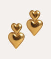Designet består af to blanke hjerter i forskellig størrelse, som elegant fanger lyset og giver et dristigt, men tidløst look.